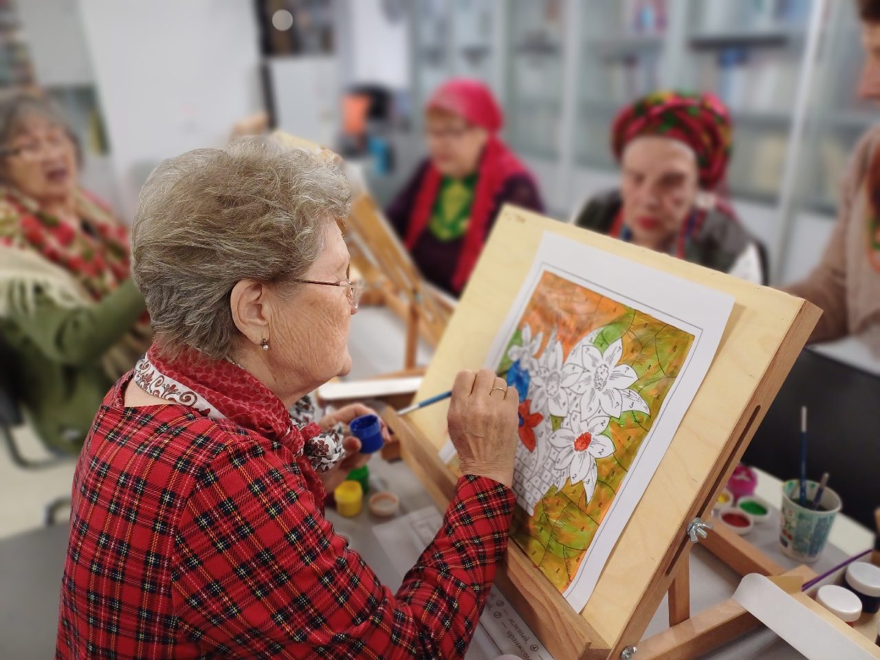 💅Участники клуба “Флоранж”, следуя инструкции, закрашивали пронумерованные участки холста, создавая яркие картины.