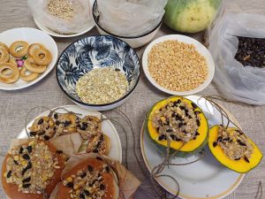 По мнению орнитологов, наибольшую опасность для зимующих птиц представляет не холод, а как раз таки недостаток пищи. Так как нынешний ноябрь нас балует теплой погодой, то сегодня ребята повесили в парке лишь быстро портящиеся кормушки на основе тыквы. А остальные мы припасли до холодов, когда птичкам будет тяжело найти себе пропитание под толстым слоем снега и льда.