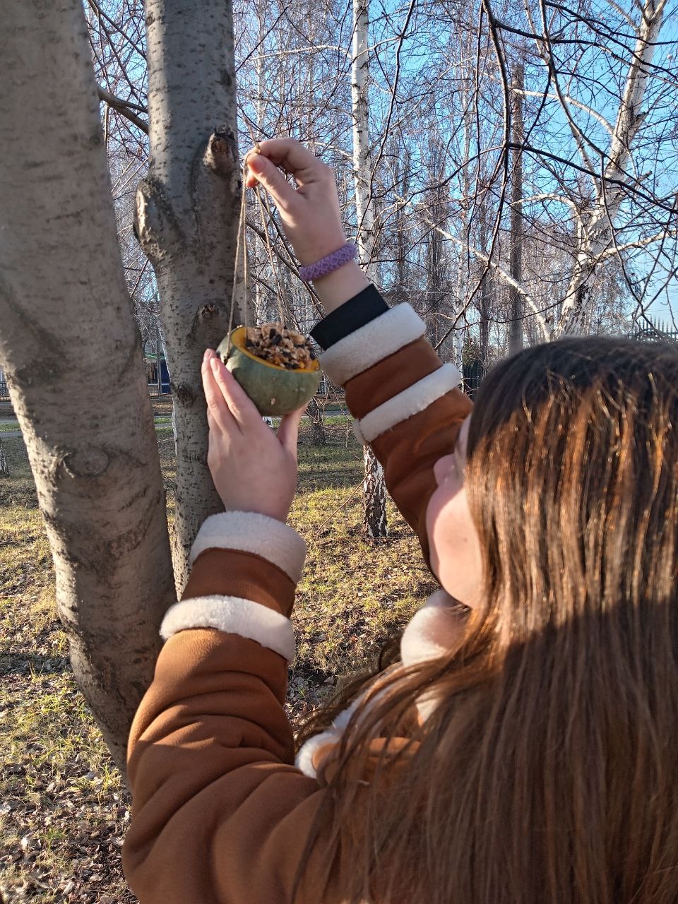 По мнению орнитологов, наибольшую опасность для зимующих птиц представляет не холод, а как раз таки недостаток пищи. Так как нынешний ноябрь нас балует теплой погодой, то сегодня ребята повесили в парке лишь быстро портящиеся кормушки на основе тыквы. А остальные мы припасли до холодов, когда птичкам будет тяжело найти себе пропитание под толстым слоем снега и льда.