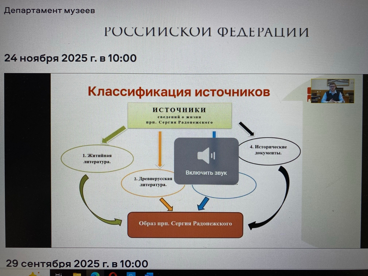 В течение 2025 года Министерством культуры Российской Федерации совместно с федеральными музеями проводится курс лекций по «Истории Отечества».