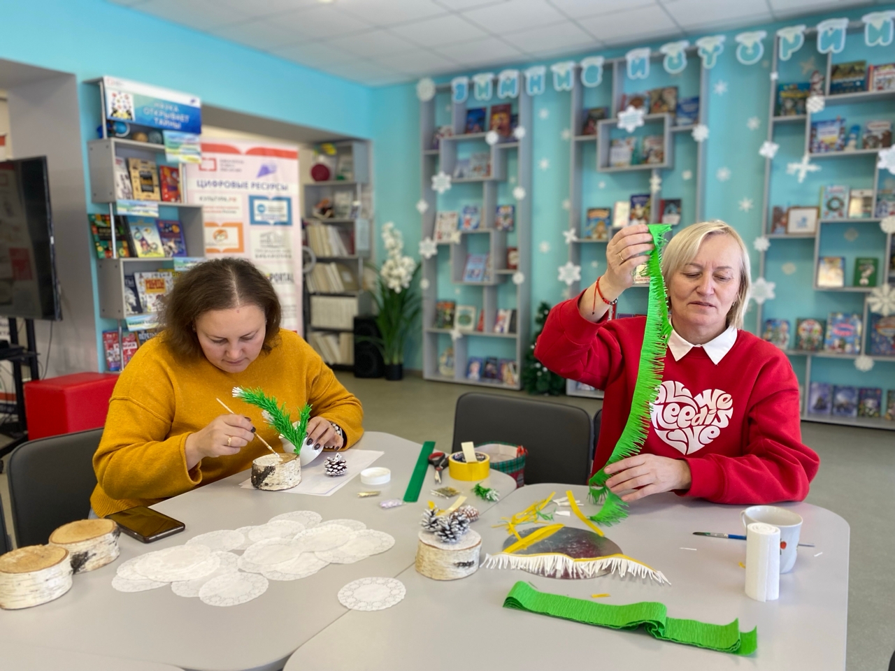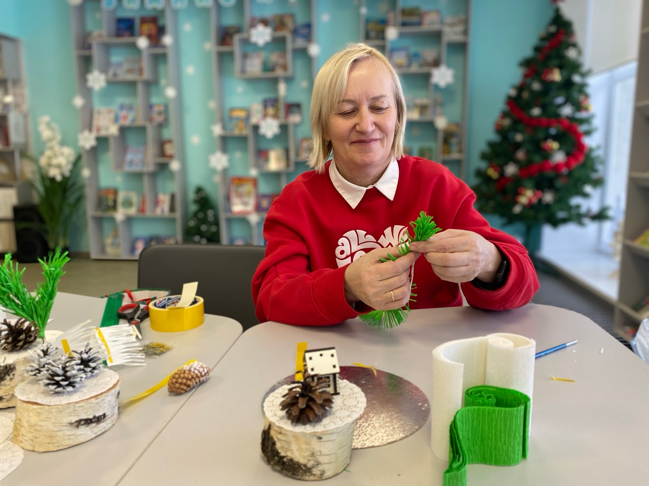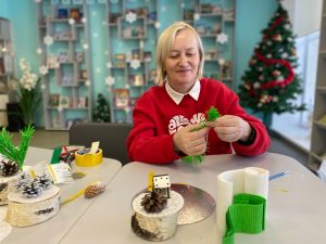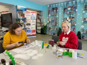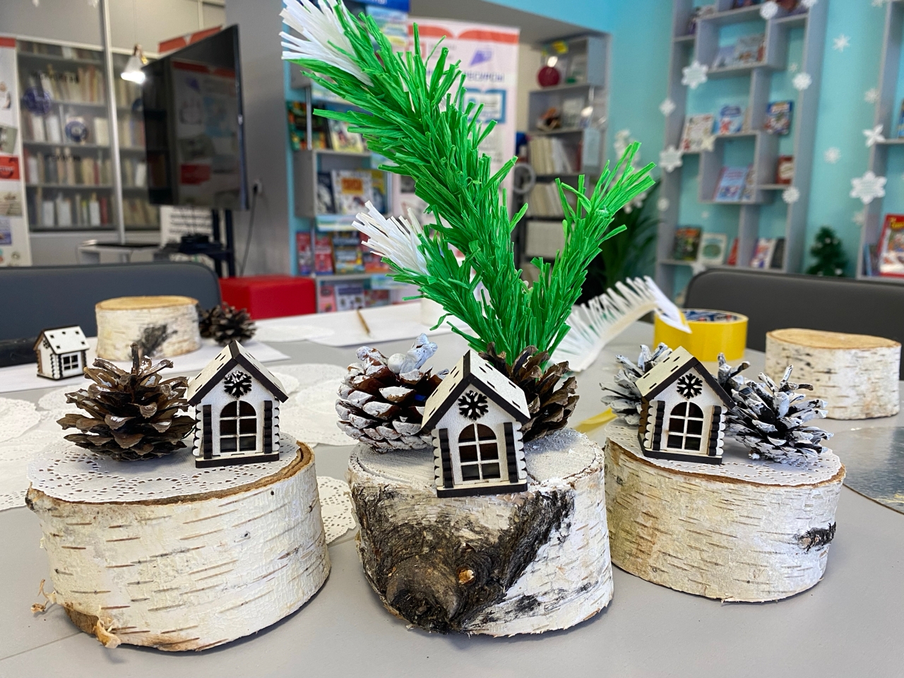 В творческой мастерской библиотекари изготовили зимние композиции, которые теперь украшают столы и создают праздничное настроение.