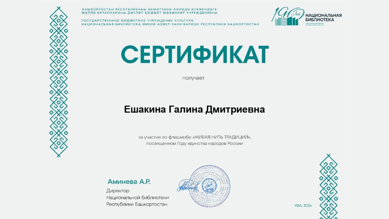 В честь Года единства народов России стартовал всероссийский видео-флешмоб «Живая нить традиции». Этот замечательный проект призван объединить всех нас через сохранение и популяризацию богатого культурного наследия нашей страны. С большим энтузиазмом к этой инициативе присоединилась Галина Ешакина, активный читатель Наумовской библиотеки!