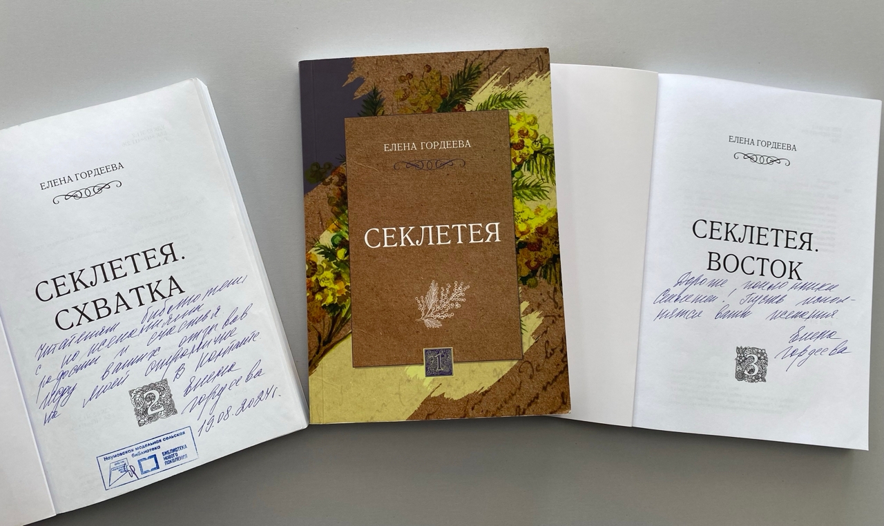/ Конкурсы и Акции / Автор нам книги подарила Автор нам книги подарила Хорошая новость для поклонников творчества Елены Гордеевой! Дождались! Вся трилогия о Секлетее вышла в свет и уже находится в нашей библиотеке! Спасибо автору за книги в дар, да еще и с личной подписью! Приходите почитать!! Поделиться: