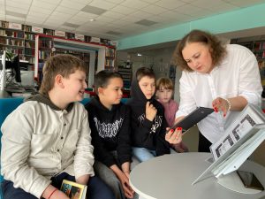 В Наумовской библиотеке, в рамках проекта «Гений места», прошла встреча, где ребята познакомились с инновационным оборудованием библиотеки, которое открывает окно в мир Новых Медиа.